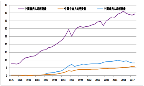 事实上我国这些年的肉类需求一直是上涨趋势,每年的肉类消耗也是不断上升,找了张图,大家感受下这可怕的上升趋势。