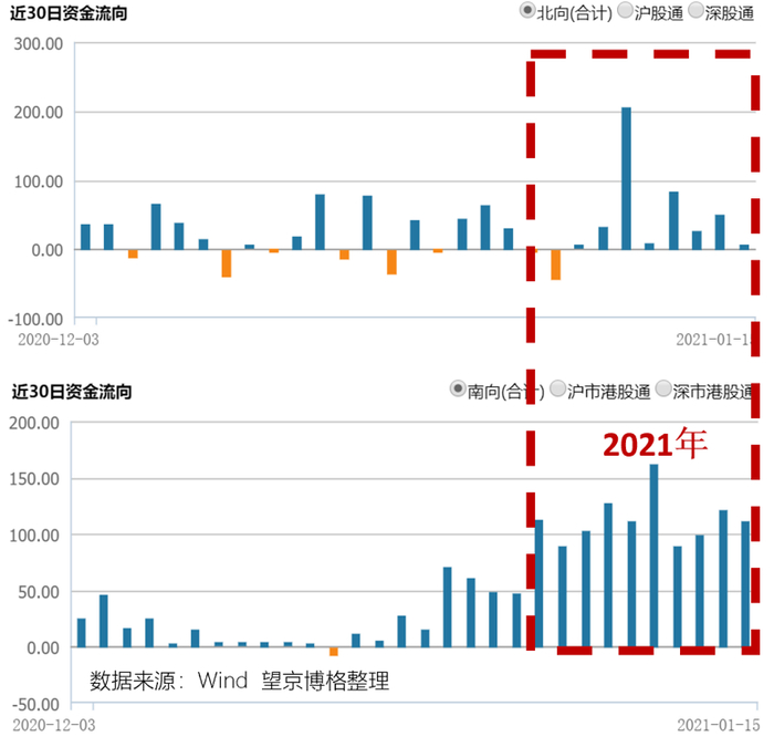 根据Wind数据“沪深港通”开通以来,截止2021年1月15日北上资金合计1.24万亿人民币,南下资金合计1.62万亿人民币,尤其是2021年以来南下资金持续每天破百亿。在A股两年结构性“牛市”之后,无论是机构投资者还是普通投资者都无法忽视港股的多元化配置价值。