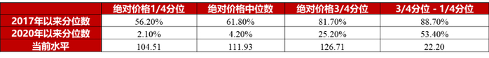 ➤ 转债绝对价格1/4分位、中位数、3/4分位较年中高点回落近10、12和17元,目前仅中高价转债位于年内相对高位。