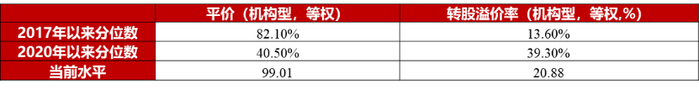 偏债型溢价率已跌至18年末水平,为估值下跌的主要力量