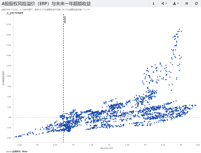 ➤ 当前股权风险溢价对应持有1年的胜率偏低。