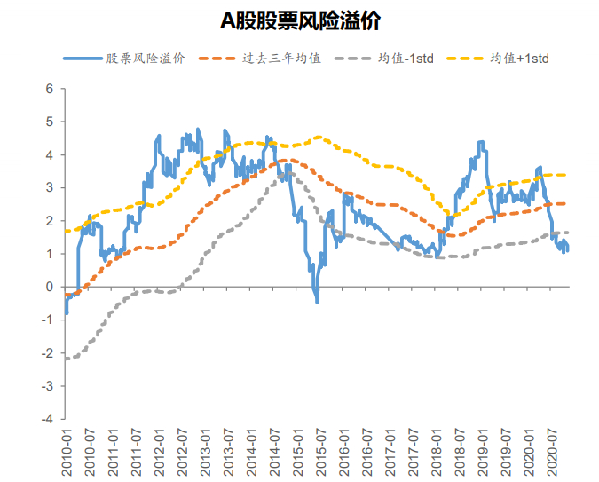 ➤ 风险溢价处在过去三年均值负一倍标准差位置,存在一定的均值回归压力。
