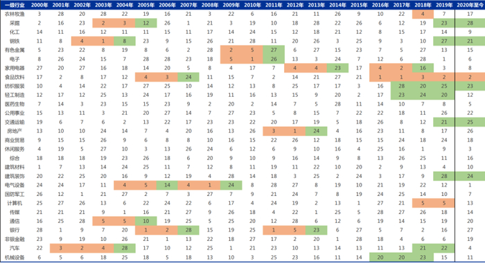 历年申万一级行业涨跌幅排名