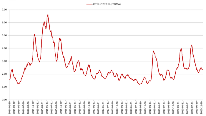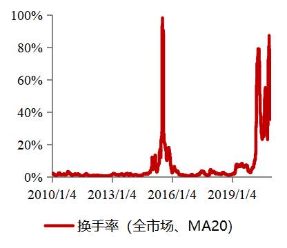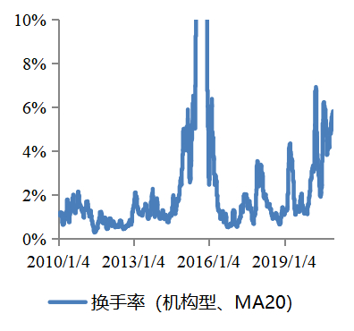 2020年系统性抬升,需持续关注机构性品种的换手率较往年出现系统性抬升,当前仍处于上行周期。