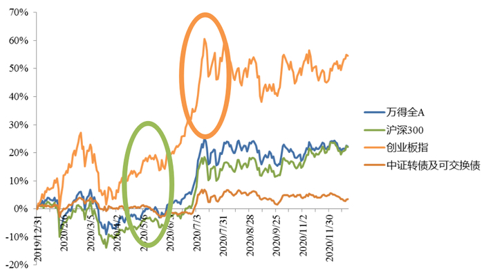 ➤ 流动性边际趋紧,叠加信用事件影响转债估值定位,2021年主动提估值的可能性不大、溢价率大概率维持低位运行,则转债将继续跟随权益市场表现。