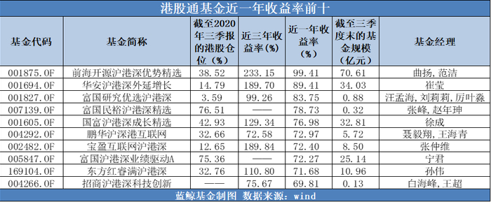 从收益率来看,截至1月18日,近一年收益率较高的有:曲扬的前海开源沪港深优势精选,崔莹的华安沪港深外延增长、汪孟海等人管理的富国研究优选沪港深、张峰等人管理的富国民裕沪港深精选、徐成的国富沪港深成长精选等,近一年收益率均超过了70%。