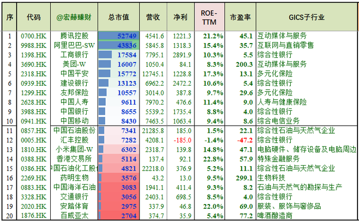 ♢ 本期恒生指数最大市值:52749亿;Top20门槛:2704亿人民币