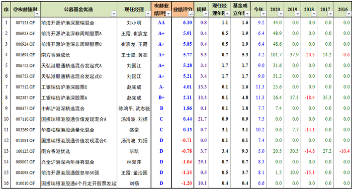 宏赫臻财在上面两个表格基础上选出建议投资者关注投资的备选基金【11】只。