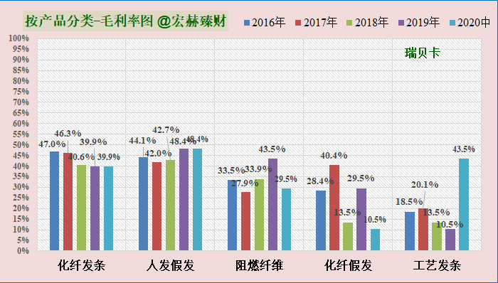 其中人发假发业务毛利率自2017年开始逐年增长,主要是由于人发假发属于高端产品,其附加值较高,随着内销比重增加,以及国外人发假发蕾丝产品销量增加,人发假发产品销售收入占比提升所致。