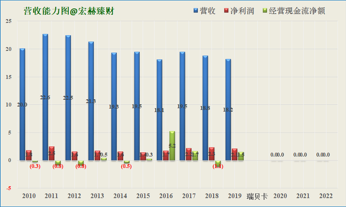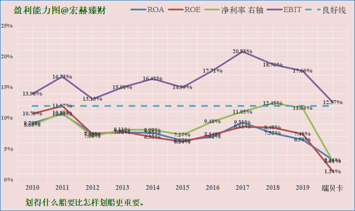 瑞贝卡盈利能力差,近年来盈利能力指标始终处于及格线下方。