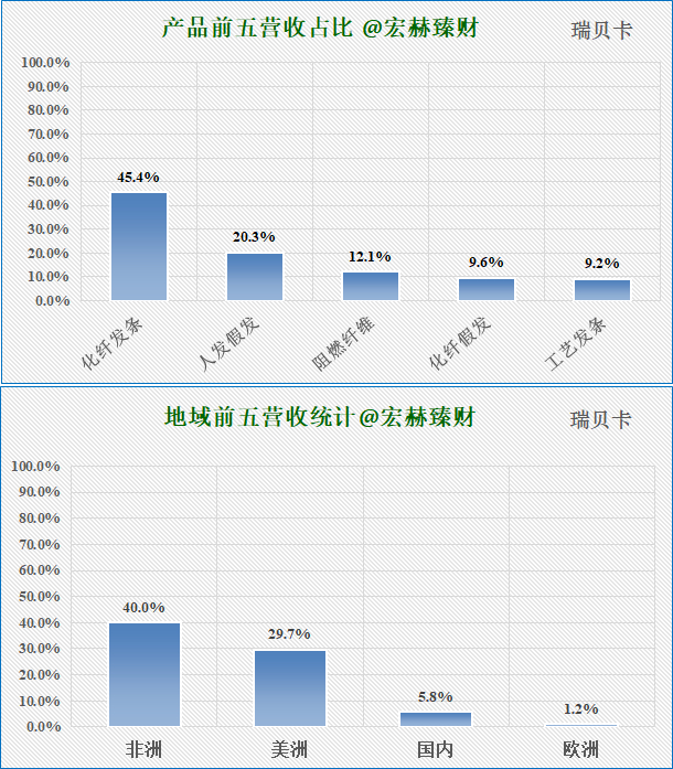 分产品来看:公司以化纤发条业务为主,2020中报中占营收比45.4%。人发假发业务占营收比20.3%。