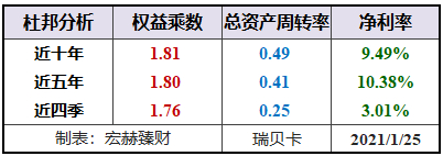 宏赫臻财建议关注未来杜邦指标趋势呈现:【低杠杆或适度杠杆(1.2-3)+周转率接近或大于1且有向上趋势+稳健增长的中高净利率>15%】