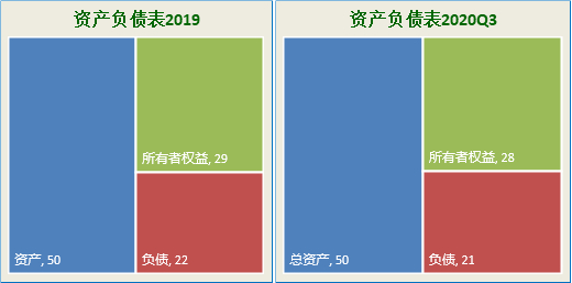 [注]:2020年Q3总资产【50】亿;净资产【28】亿,负债【21】亿;