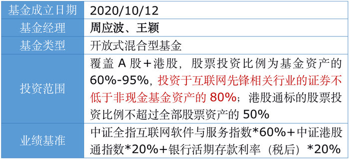 截至2020年4季度末,中欧互联网先锋合计规模105.10亿元。投资股票占基金总资产比例83.77%,其中通过港股通投资港股的占比是基金总资产的32.97%。(本基金仍在6个月建仓规定期内,投资股票、港股等占比目前仍处于灵活阶段)