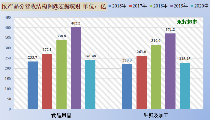 分品类看,公司主要的超市业务生鲜占比近半。2020年中报,公司生鲜及加工、食品用品、营收占比分别约45%、48%。对比行业内上市公司,永辉生鲜名列前茅,生鲜成为公司特色。