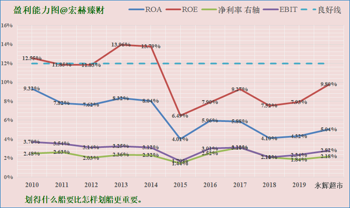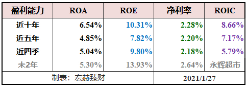 永辉超市盈利能力较差,近年来盈利能力指标始终处于及格线下方。