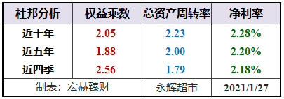 宏赫臻财建议关注未来杜邦指标趋势呈现:【低杠杆或适度杠杆(1.2-3)+周转率接近或大于1且有向上趋势+稳健增长的中高净利率>15%】