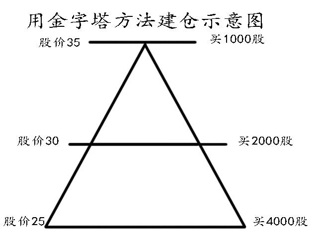 金字塔型买入法,为正金字塔型(即正三角形)的下方基底较宽广,且愈往上愈小,宽广的部分显示股价价位低时,买进数量较大,当股票股价逐渐上升时,买进的数量应逐渐减少,从而降低投资风险。金字塔买入搭建的原则是宁可少赚,可以小亏,不可大亏。