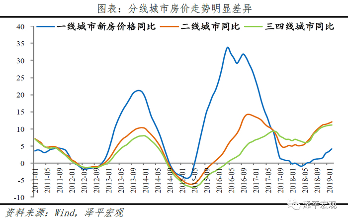 从房价周期看,前期经历明显调整的部分一二线城市及周边房价将逐渐趋稳,如供给不足或存在一定上涨压力。从历史经验看,过去不少城市的房价存在三年左右的小周期,涨一段调整一段,小周期的背后是房地产调控、地方对土地财政的依赖、需求释放与透支等因素。2015-2016年京津冀、长三角、珠三角部分城市及一些省会城市房价已连续低迷2年以上,目前成交量有所回暖,市场逐渐趋稳。此类城市在一线城市中有北上广深,二线城市中有天津、南京、无锡、苏州、杭州、济南、郑州、武汉、东莞等,三线城市中有廊坊、温州、嘉兴、珠海、惠州、中山等。而部分前期主要受棚改货币化刺激导致房价大涨、同时缺乏基本面支撑的三四线城市存在一定调整风险。