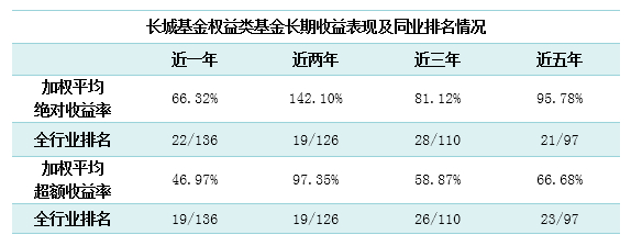 好的投资,时间看得见。2021年1月1日公布的海通证券数据显示,截至2020年底,长城基金旗下权益类基金近一年、近两年、近三年、近五年的加权平均绝对收益率排名和超额收益率排名均位居行业前1/4。