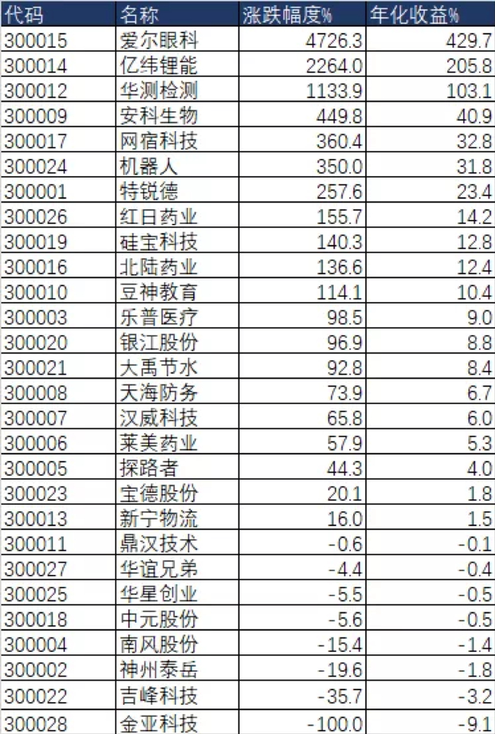 前些日子,博主“招财大牛猫”梳理了过去十年创业板的所有股票。