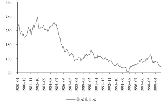 这时候,日元兑换美元开始快速升值,仅仅两年,日元兑美元已经升值一倍!
