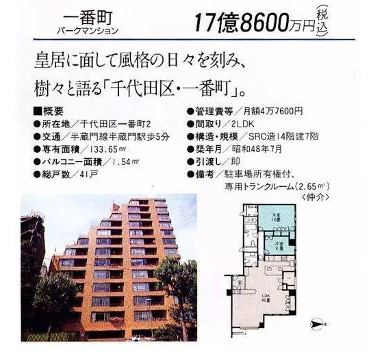 举个例子,在1990年,东京中心区的千代田区的一番町住宅,达到了17亿8千万日元。