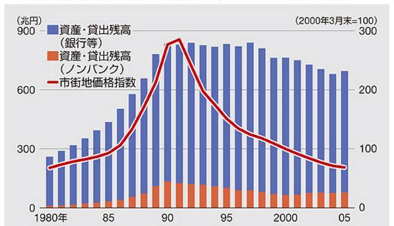 金融机构对于房地产的不良贷款不断积累,1990年房地产泡沫破裂所发生的不良债权,达到了200万亿日元 。