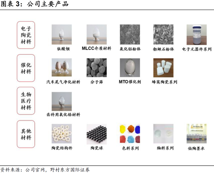报告期内,公司主要从事各类高端功能陶瓷新材料的研发、生产和销售。公司紧紧围绕新材料这一核心业务,充分利用自身的技术和研发优势持续深耕新材料领域,新产品不断地推向市场,现已形成了电子材料、催化材料、生物医疗材料和其他材料四大业务板块。