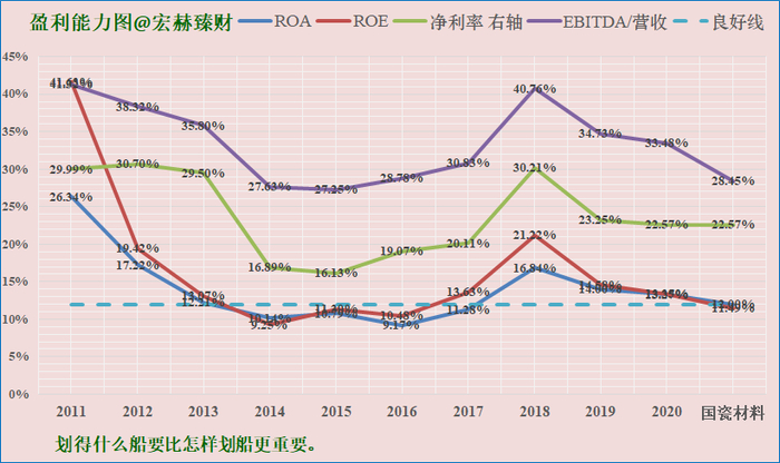 国瓷材料该指标较好,当前处于优秀区域区间位置,获利能力很强。