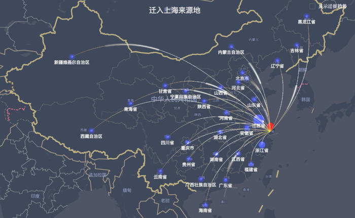 当然,有人离开上海,也有人来到上海过年,2月10日上海主要城市迁入来源地为:苏州、嘉兴、杭州,而省份则是江苏、浙江、安徽。