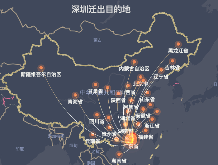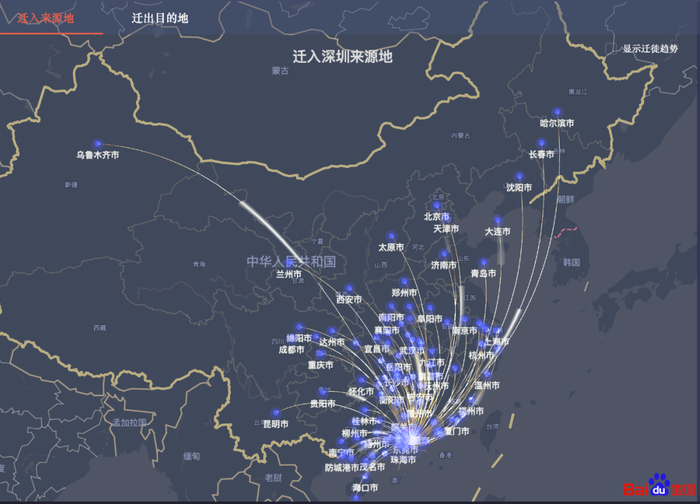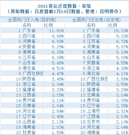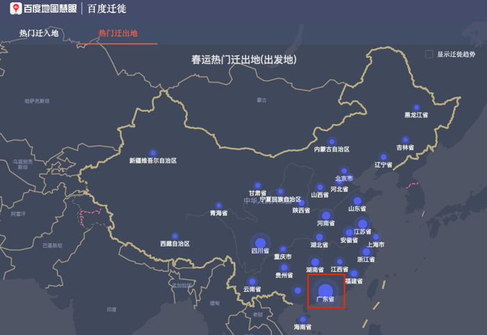从百度地图地图提供的数据来看,不管是热门迁出还是迁入目的地,广东省都排名全国首位,并且遥遥领先。