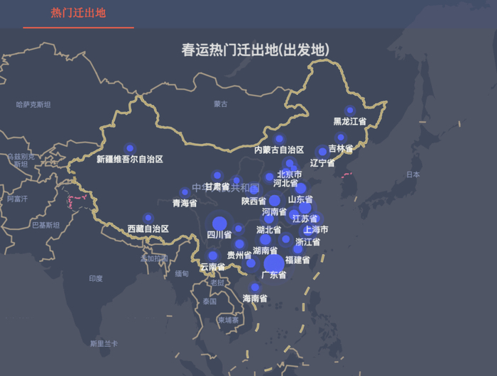 最后我们看一张图,这是春运期间全国热门城市迁出图,大概率说的就是这么一件事:所有的个体迁移,都是在用脚投票。