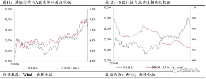 从南向资金分层配置角度,南向资金流入低估值高股息板块的持续性需要关注股价修复性回升导致隐含股息率降低,从而配置型资金增配动能出现衰减,而资讯科技业等成长性板块的南向资金流入持续性则更多需关注港股基金发行缩量和国内流动性边际收紧可能性。
