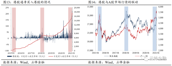 自港股通启动以来,目前共有3轮“A股处于阶段性高位、南向资金大幅买入港股而恒生指数共振走高”的情形。2015年4月,受A股南北车合并带动的行情影响,南向资金主要涌入配置中国南车、中国北车等工业企业;2018年1月,受A股的金融地产板块行情带动,南向资金主要涌入配置工行、建行等金融企业。前两轮南向资金大举流入港股,本质上是配置型资金主导的AH联动行情下的估值套利。