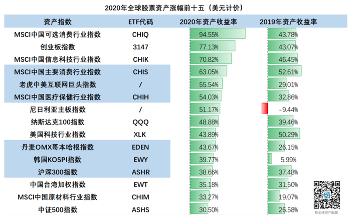 由于我国2020年率先控制住了疫情,中国资产受到了国内外资金进一步的追捧。在285种大类资产收益排名中,中国资产占据了前几席,其中最亮眼的要属消费行业。