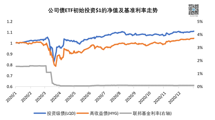 除了价格的回升外,许多公司都趁着低利率大举发行债券。尤其是美联储开启无限QE后的4、5月份,公司债分别密集发行了3428亿美元及4311亿美元。截至2020年年底,全年累计发行了2.9万亿美元的公司债,比去年的1.78万亿美元高出62.9%。在2020年的这场流动性危机中,公司债经历了一次有惊无险的急跌,美联储及时的无限QE让盛宴得以持续。