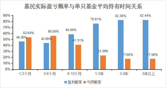 据2019年《权益基金个人投资者调研白皮书》,基民赚钱概率与持有基金的时间正相关:持有时间越短,亏损幅度可能越大,持有单只基金时间超过半年以上者,超一半都能盈利。