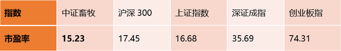 横向对比A股主要股指,中证畜牧养殖指数估值较低,具备较好的投资价值。