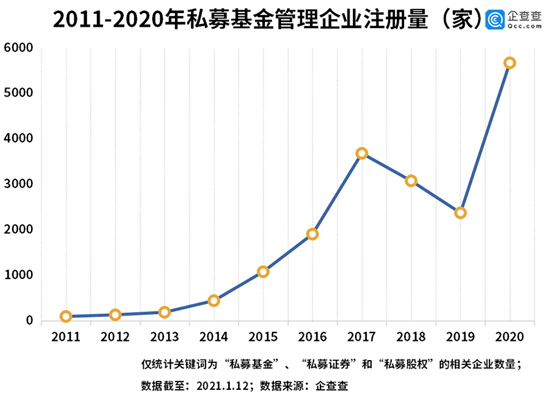 2011年以来的十年之间,私募基金企业注册量呈波动增长趋势。