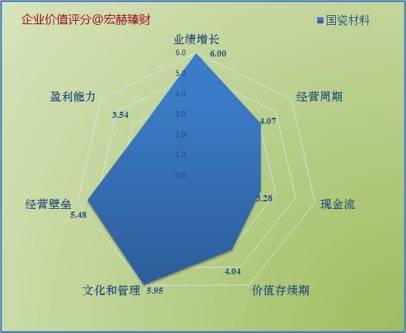 国瓷材料该指标【5】优【0】良【1】差(6优企业很少,5优值得你重视)