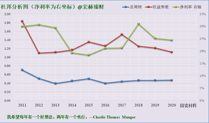 宏赫臻财建议关注未来杜邦指标趋势呈现:【低杠杆或适度杠杆(1.2-3)+周转率接近或大于1且有向上趋势+稳健增长的中高净利率>15%】