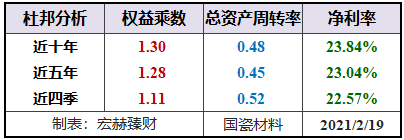 国瓷材料杜邦机构:适度杠杆+较高的净利率,周转率水平较低。