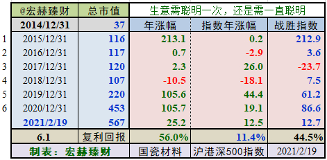 2014年末至今6个整年度段里5年市值增长战胜指数,胜率【83%】,今年以来暂时持续战胜指数。