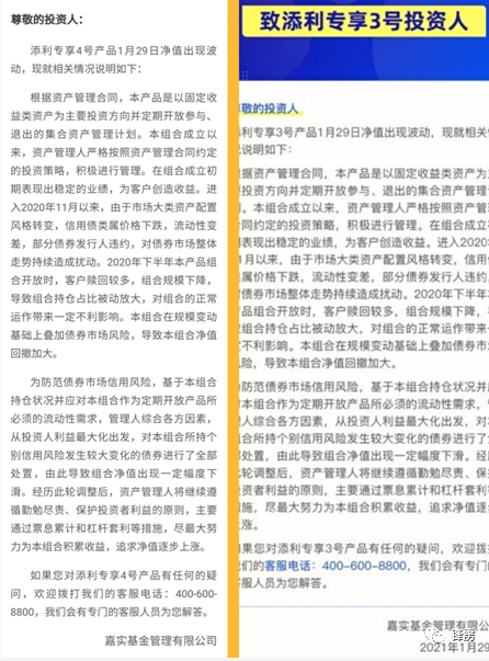 一位购买添利专享4号产品的投资者向表示“自己在向嘉实基金客户打电话询问提前赎回及赔问题时,嘉实基金表示已将该产品所持华夏幸福所发债券全部清仓,但对其诉求并未给予回复。”