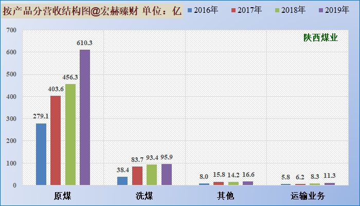 公司主业突出,煤炭营收总占比保持在96%以上。公司主营业务为动力煤,2019年原煤及洗煤业务合计收入占公司销售收入的96%。公司运输业务及其他业务收入在营业总收入中的占比很低。