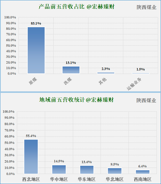 陕西煤业公司以煤炭生产销售为绝对主业。煤炭的销量有两个主要来源,其一为渭北、彬黄和榆林三大基地的自产煤,其二为集团生产煤炭的买断销售,销售方式以地销为主,长协为辅。