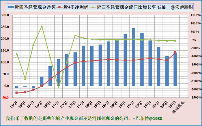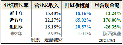 陕西煤业过去五年归母净利润复合增速:65.02%,近四季增速20.57%,未来一致预期复合增速为1.01%。