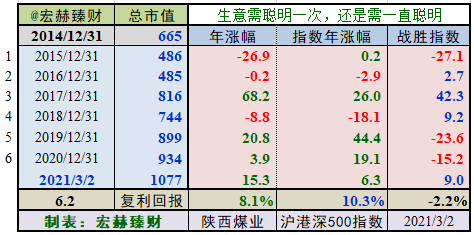 2014年末至今6个整年度段里3年市值增长战胜指数,胜率【50%】,今年以来暂时战胜指数。