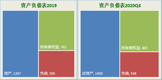 [注]:2020年三季报总资产【1430】亿;净资产【883】亿,负债【543】亿;